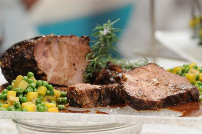 Sellar en una sartén con aceite, por todos sus lados. Esto le da una textura diferente a la hora de servirla. Agregar el vino y el romero. Cocinar durante 1 hora. Luego, desglasar con aceto balsámico.